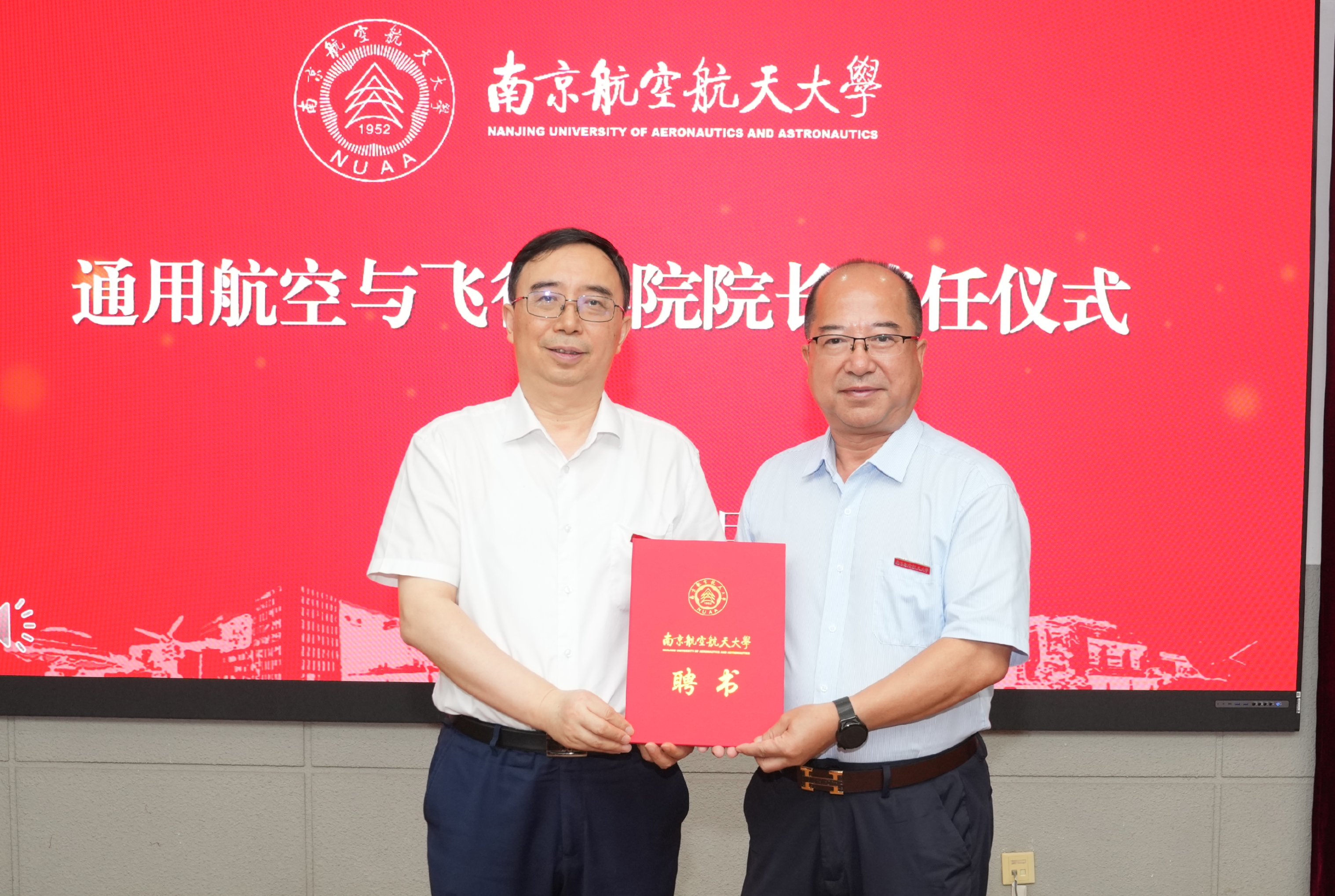 中航通飞党委书记、董事长杨雷,党委副书记、副总经理陈晓毅,型号总设计师黄领才,我校党委书记甄良、校长姜斌、副校长徐正扬、张启钱出席聘任仪式,会议由张启钱主持。
