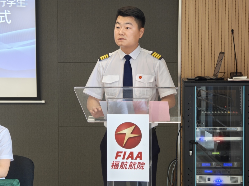 2024级本科生申林翔作为学员代表发表结业感言,他感谢学院和航校的周密组织和精心授课,他表示通过本次实践培训,进一步扩充了知识体系,提升了专业素养,拓宽了专业视野,同时也明晰了后续的学习目标。