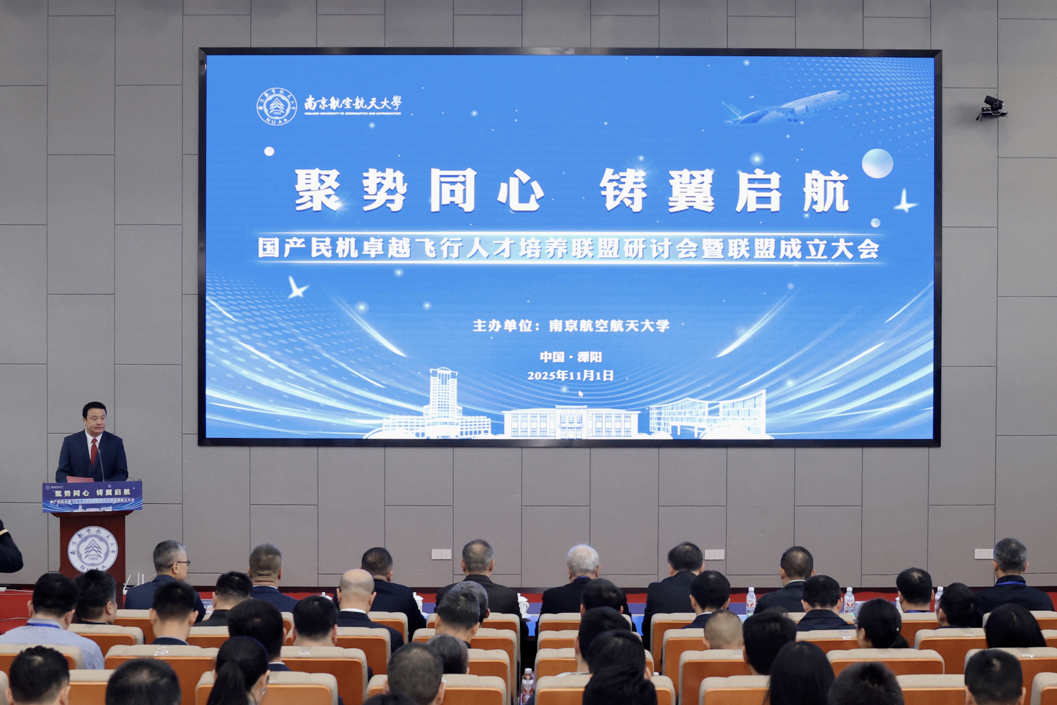 南京航空航天大学携手中国民用航空飞行学院、北京航空航天大学、中国民航大学、中国航空技术国际控股有限公司、中国国际航空股份有限公司、中国东方航空股份有限公司、成都航空有限公司等副理事长单位联合发起成立“国产民机卓越飞行人才培养联盟”,为国产民机事业发展注入强劲人才动力。中山大学、太原理工大学、昆明理工大学、内蒙古工业大学、山东航空学院、南昌航空大学、安阳工学院、常州工学院、郑州航空工业管理学院、西安航空学院、南京航空航天大学金城学院、吉林省福航航空学院有限公司、南非艾维国际飞行学院、龙昊通用航空集团股份有限公司、青岛九天飞行学院、新疆天翔航空学院、湖北蔚蓝通用航空科技股份有限公司、珠海中航飞行学校有限公司、陕西凤凰国际飞行学院、安徽蓝天国际飞行学院等理事单位,我校教务部、学生处、天目湖校区管委会、无人机研究院、牧星学院、民航学院、通用航空与飞行学院有关负责同志和教师参加会议。